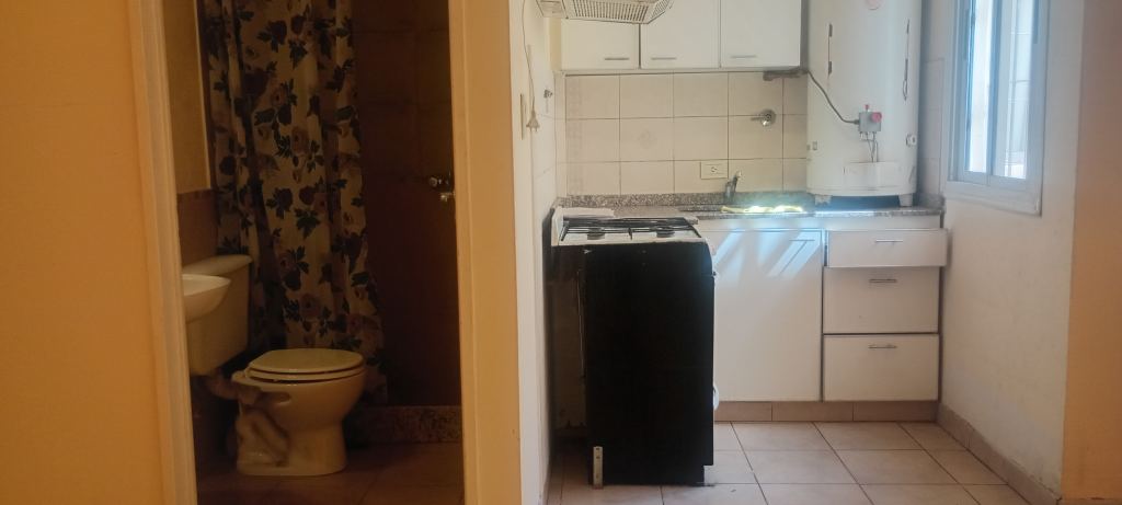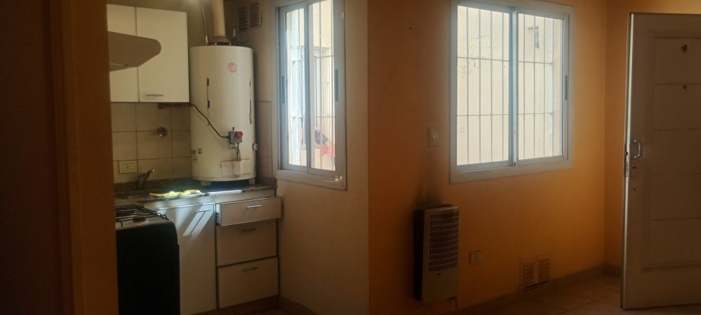 El inmueble se encuentra dentro de un pequeño complejo de pocos departamentos, no paga expensas comunes. Posee un pequeño patio común que le otorga luminosidad al inmueble. Se ingresa por un living - comedor - dormitorio todo unido, muy luminoso. Una cocina completamente amoblada con alacena y bajo mesada, con artefacto de cocina 4 hornallas con horno y un calefón térmico, la calefacción es a través de un calefactor.