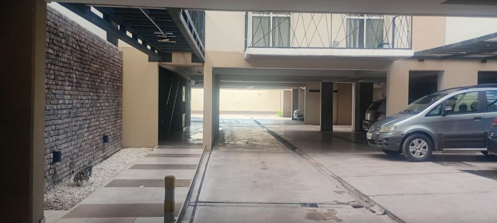 Posee cochera espaciosa y cubierta para un vehículo, y portón automatizado.